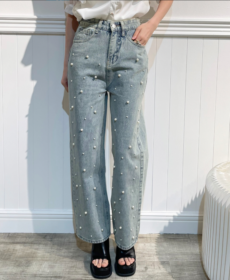 Pearl Deco Wide Denim Pants パールデコワイドデニムパンツ.