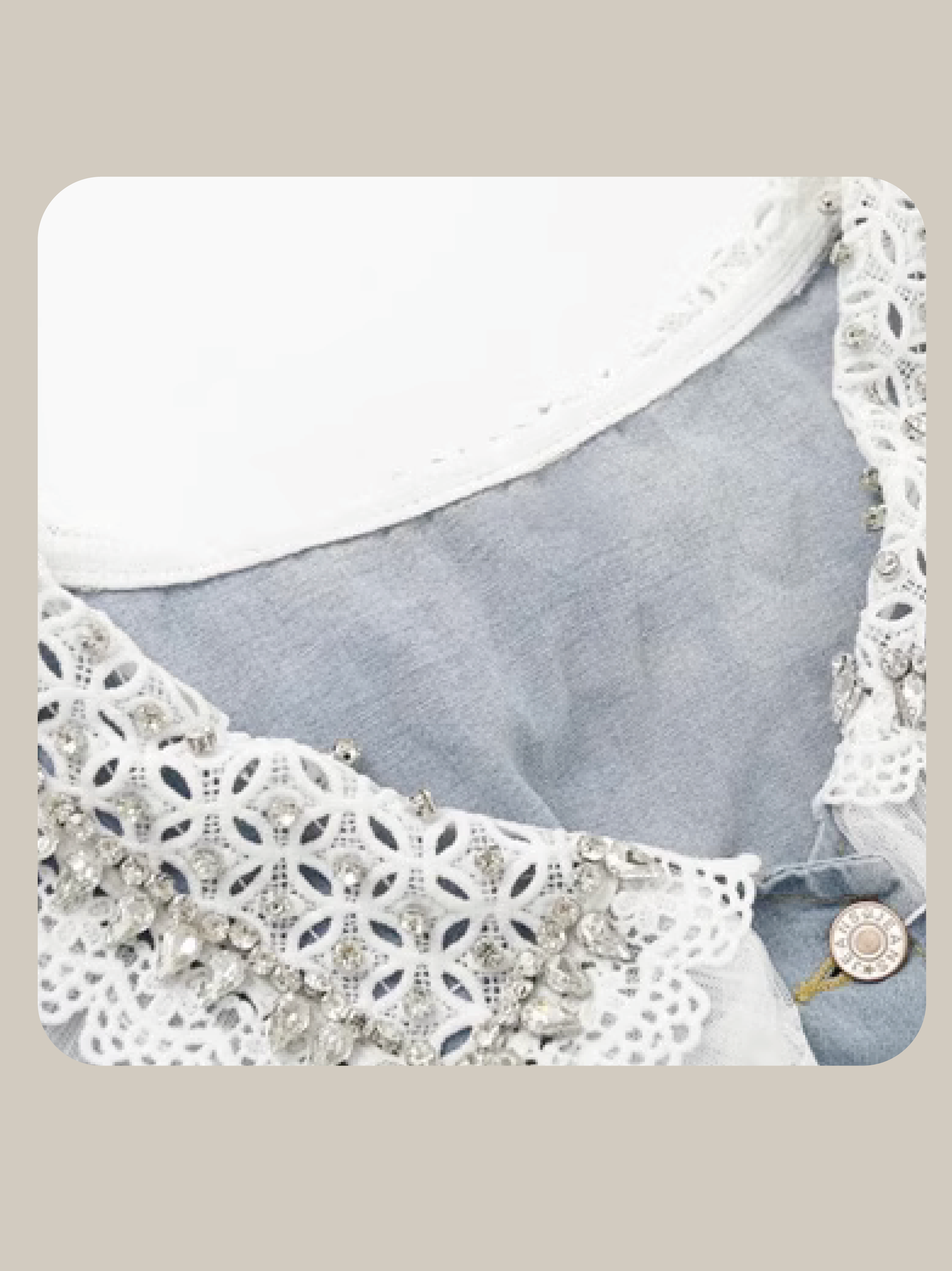 Beading Design Lace Collar Denim Dress ビーズデザインレースカラーデニムドレス